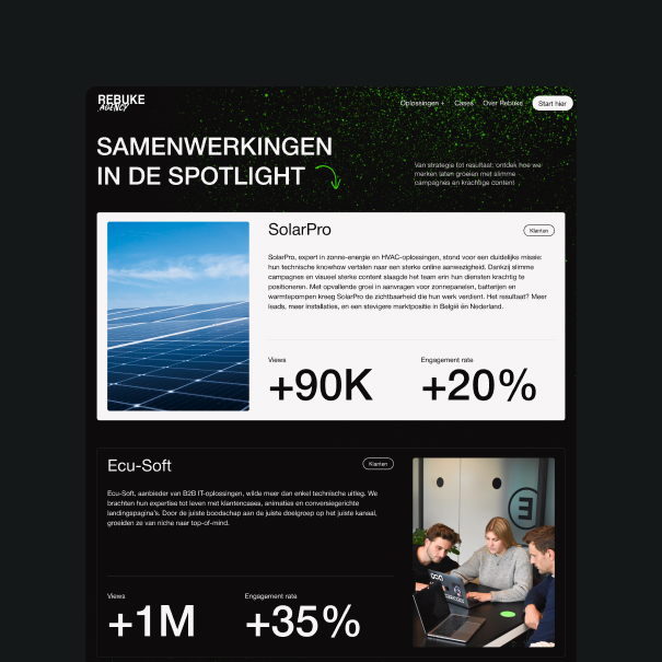 "Very hands-on and proactive. It was a pleasure to work with Daan & Aster. Since the website is live, we have increased impressions by 15% and Google is happy with it."